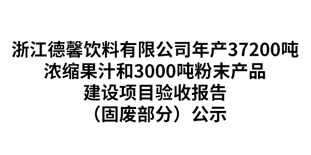 浙江德馨饮料有限公司年产37200吨浓缩果汁和3000吨粉末产品建设 继续阅读 -